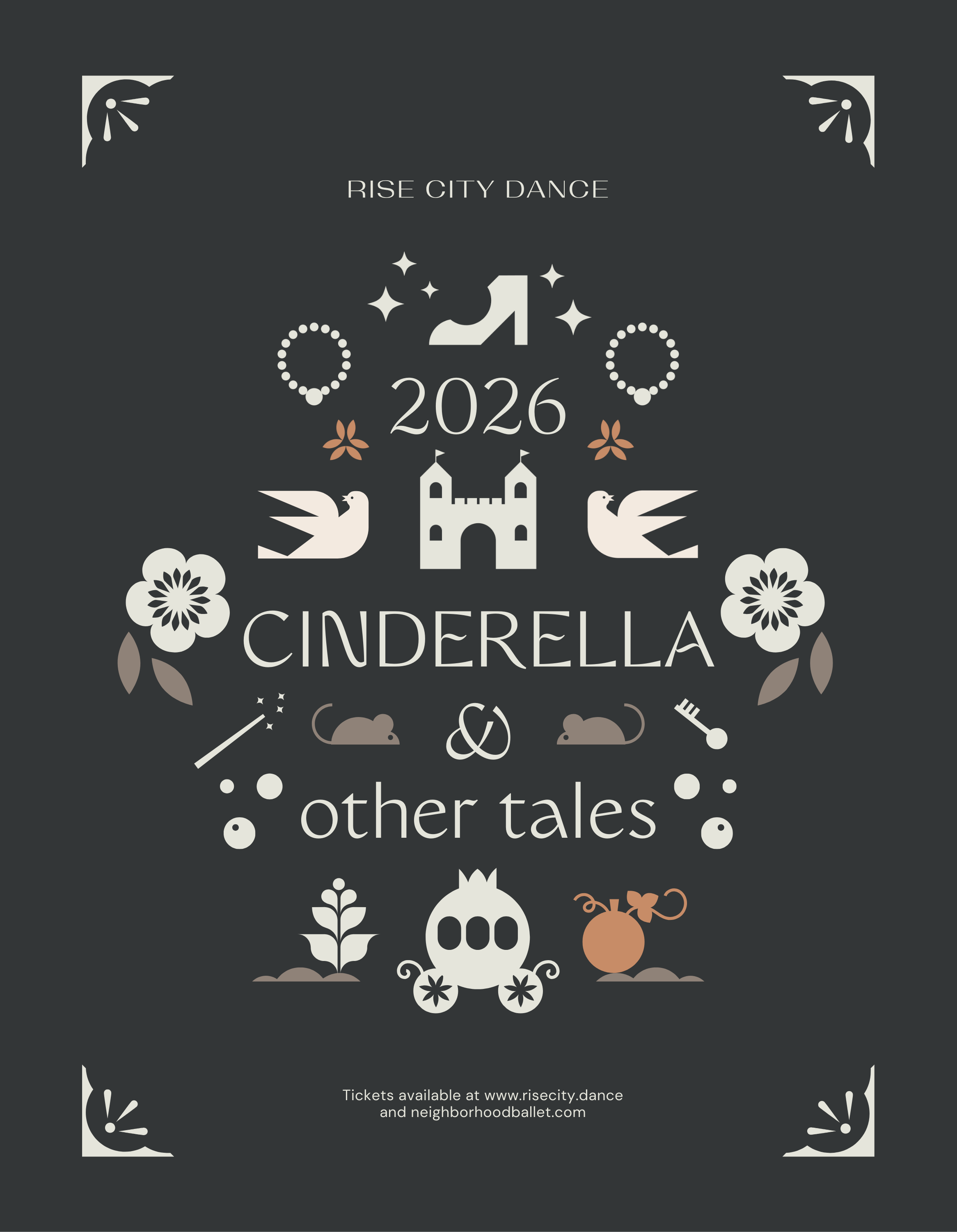 Cinderella and Other Tales invites audiences on a whimsical journey through dance, brought to life by an enchanting cast of more than 100 young dancers from Rise City Dance. This imaginative performance weaves together beloved moments and playful surprises. From hilariously mischievous stepsisters and enchanting woodland creatures to graceful fairies and a moonlit night at the ball, each scene unfolds with heart and artistry. At its center is Cinderella’s timeless love story, a tale of kindness, transformation, and hope that continues to captivate generation after generation.